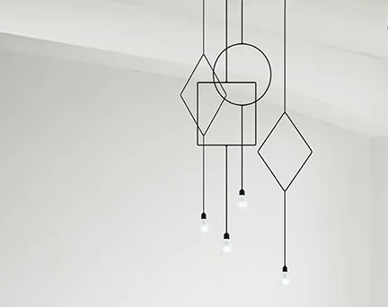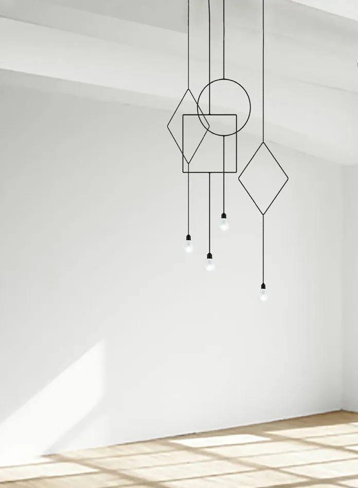 Con tres formas básicas diferentes. Symmetry es una serie de lámparas elegantes y minimalistas. Sus versiones pueden agruparse de varias maneras, para crear un estilo personalizado o como pieza única para destacarse en un espacio. Hecha de cable de metal, Symmetry contrarresta su apariencia fuerte con un toque delicado: un cordón de tela que cubre toda la estructura.