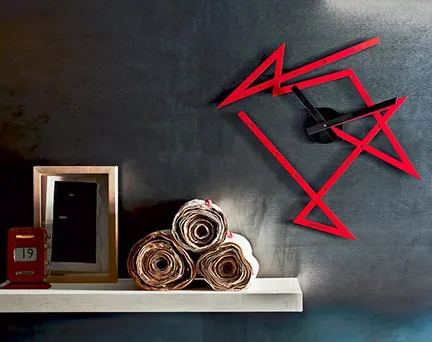 El diseño del objeto recuerda explícitamente el estilo arquitectónico de Liebskind, con líneas discontinuas, superficies rotas, cortes y aperturas. El mecanismo del reloj se encuentra en el centro de la estructura. Está realizado en acero rojo.