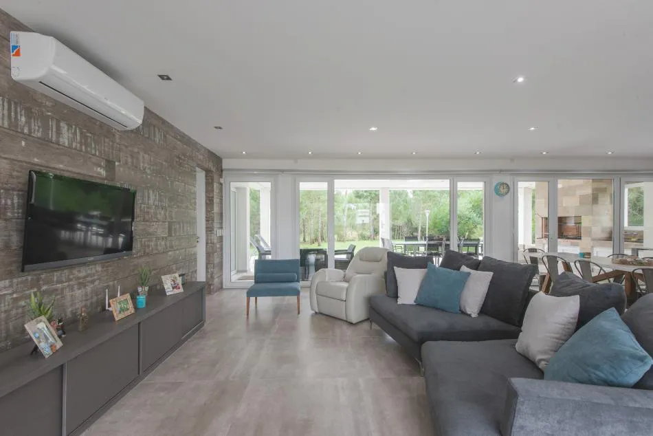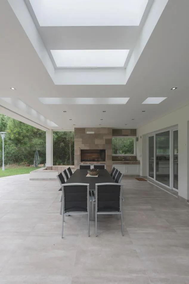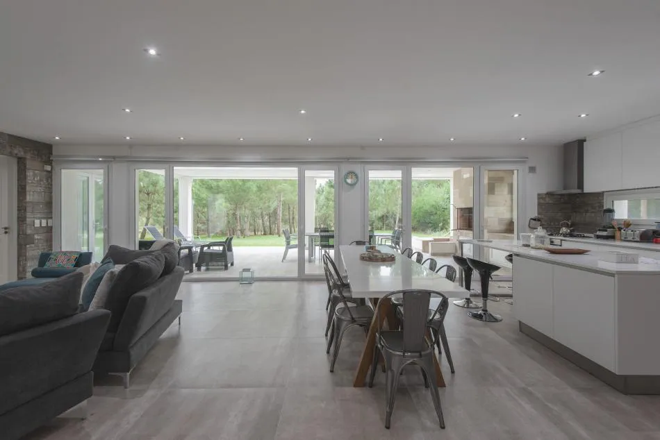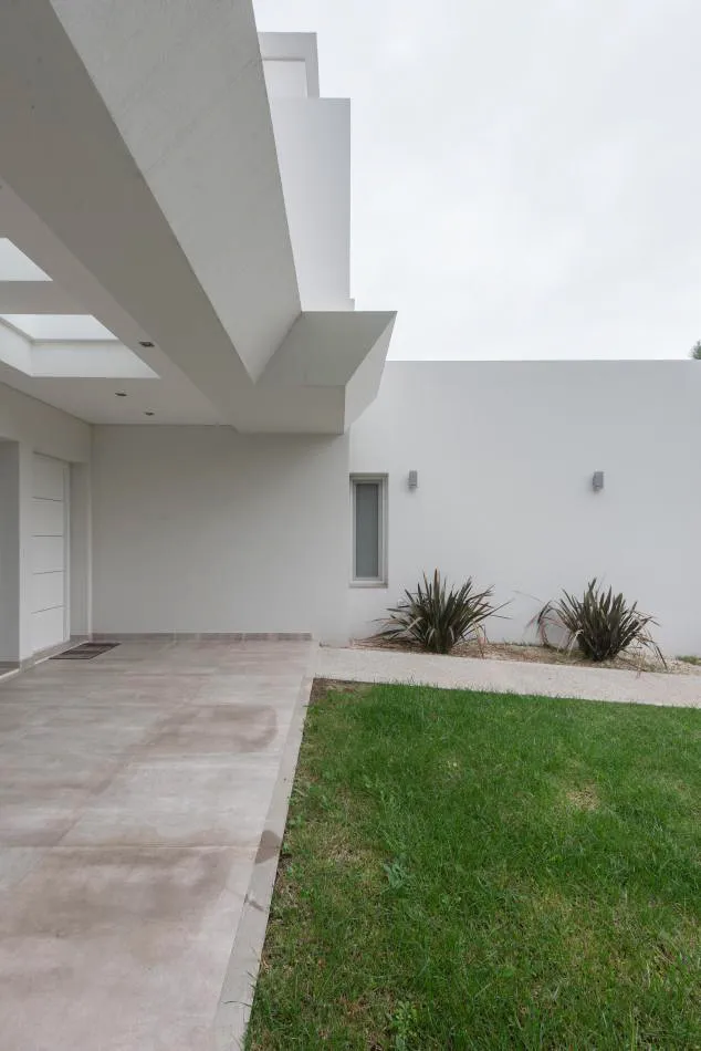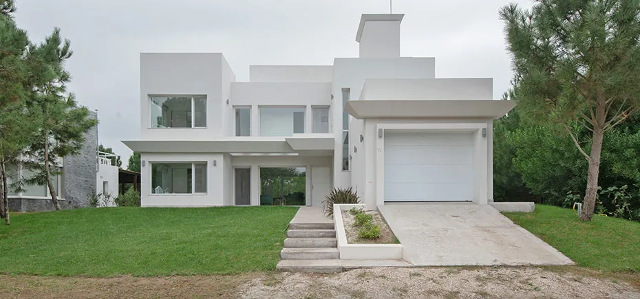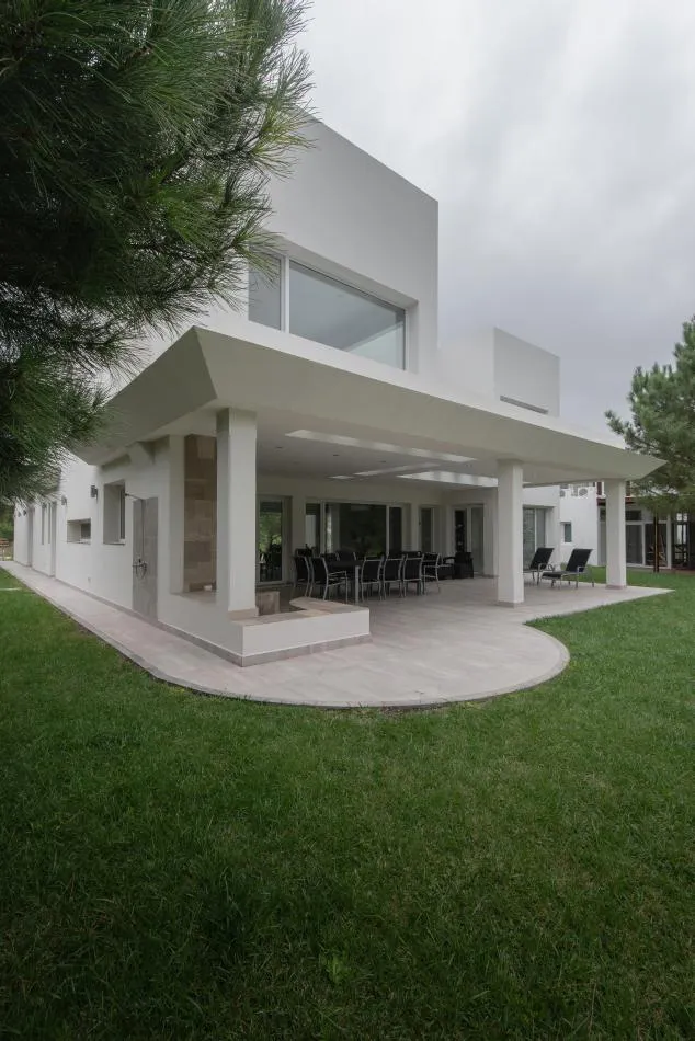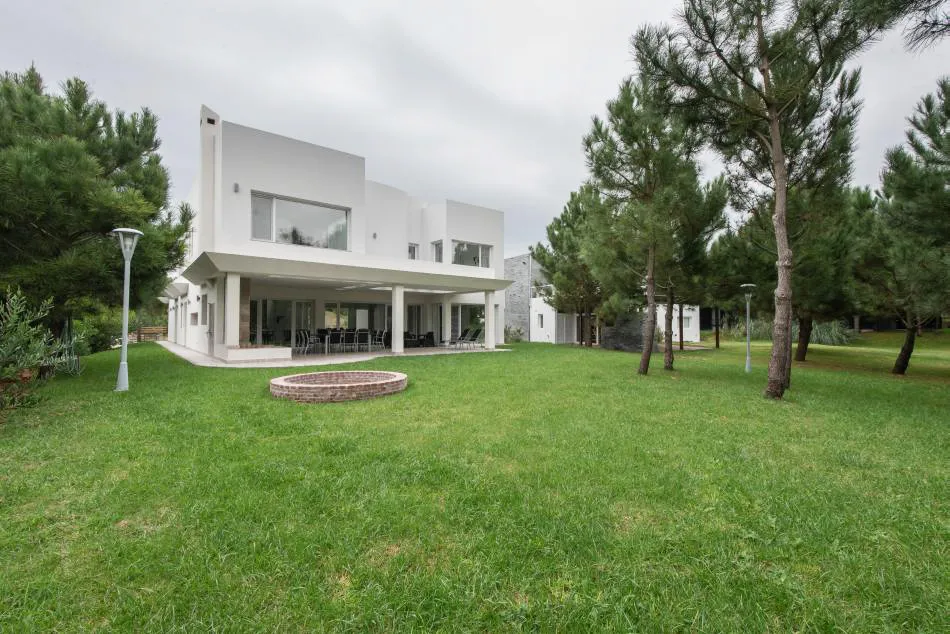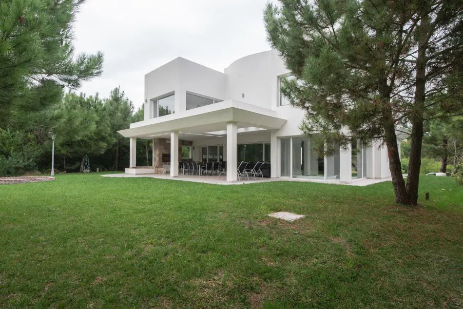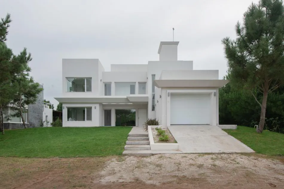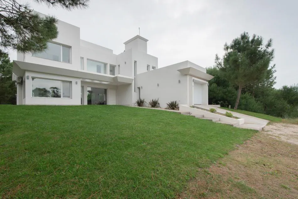 Ubicada en el golf del barrio Costa Esmeralda, inmersa en el bosque, entre pinos y médanos, surge esta vivienda, obra del Arquitecto Nicolás Bruno. Las formas puras y el blanco como protagonistas de revestimientos exteriores e interiores son las características que a simple vista se destacan.