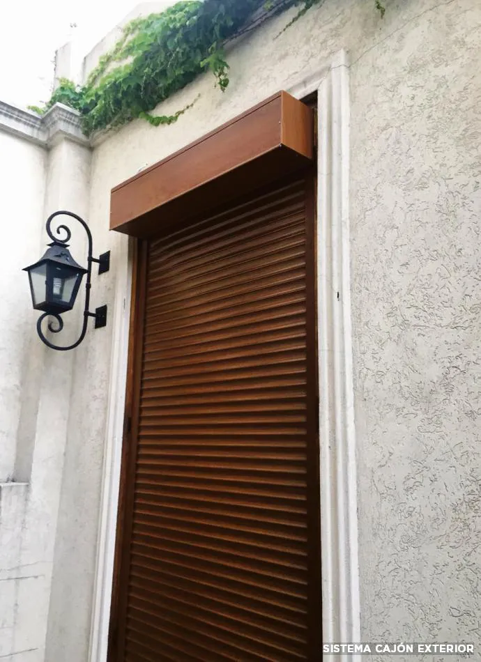 Para instalar en ventanas donde no dejaron lugar para el rollo de la persiana. El cajón exterior puede tener recogedor a cinta o automatizarse. Adaptable a cualquier tipo de ventana existente, de forma sobrepuesta a la fachada y utilizando guías sencillas, se colocan por el exterior de la vivienda, sin necesidad de manipular los componentes instalados con anterioridad.