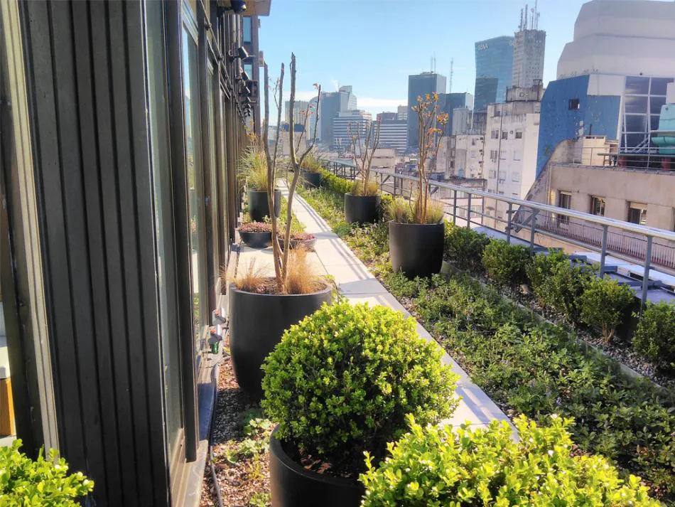 Un techo verde tiene que cumplir con dos requisitos fundamentales: que las plantas crezcan bien y que tenga un sistema de impermeabilización resistente a las raíces. Para eso, se trabaja en base a PVC o cauchos. Cuando se decide hacer un techo verde es necesario planificarlo, pensar en este tipo de aislación que se coloca previamente. En todo el mundo podés hacer techos en edificios que ya están construidos, pero cuando se hace uno nuevo hay que pensarlo desde cero, porque restaurar es más caro que planificar de antemano.