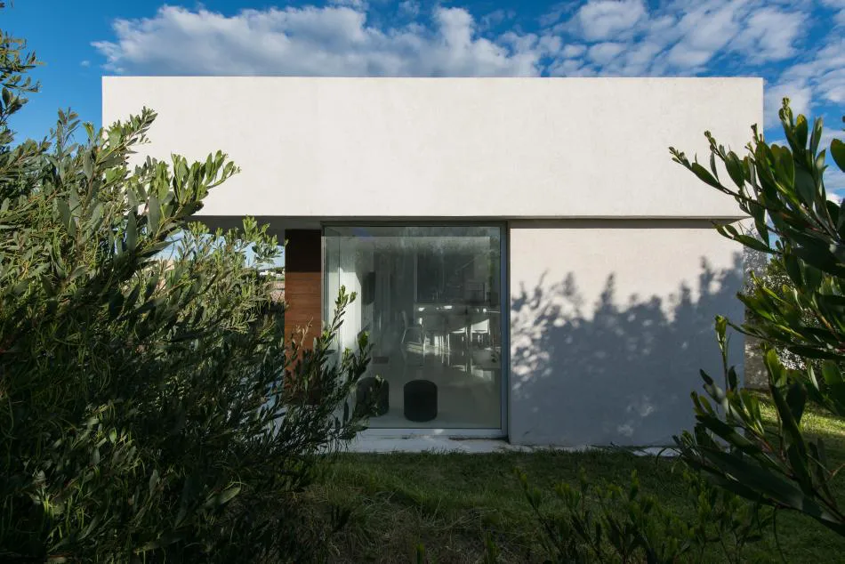 El minimalismo del conjunto visible en el despojo de color y objetos, enfatiza el contraste con las visuales coloridas y morfológicas de su entorno, potenciando los verdes y amarillos de la forestación y del suelo.