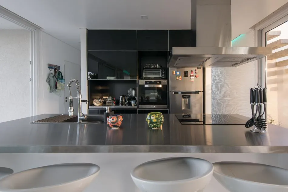 Estar, comedor y cocina se integran entre sí y con la galería que resguarda la parrilla dotada del mobiliario necesario para operar como un segundo comedor cuando se prefiera.