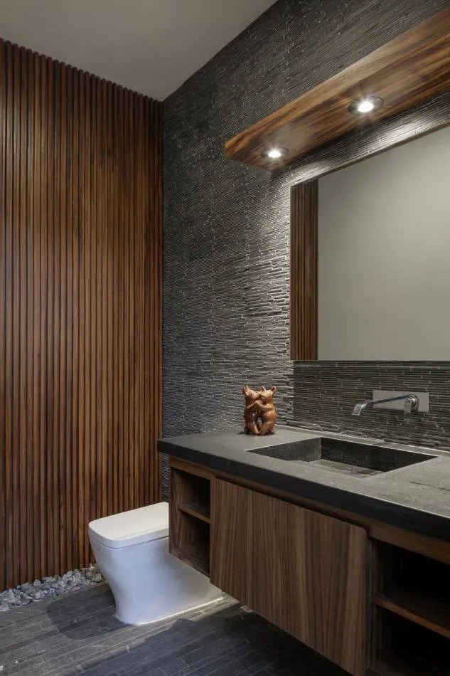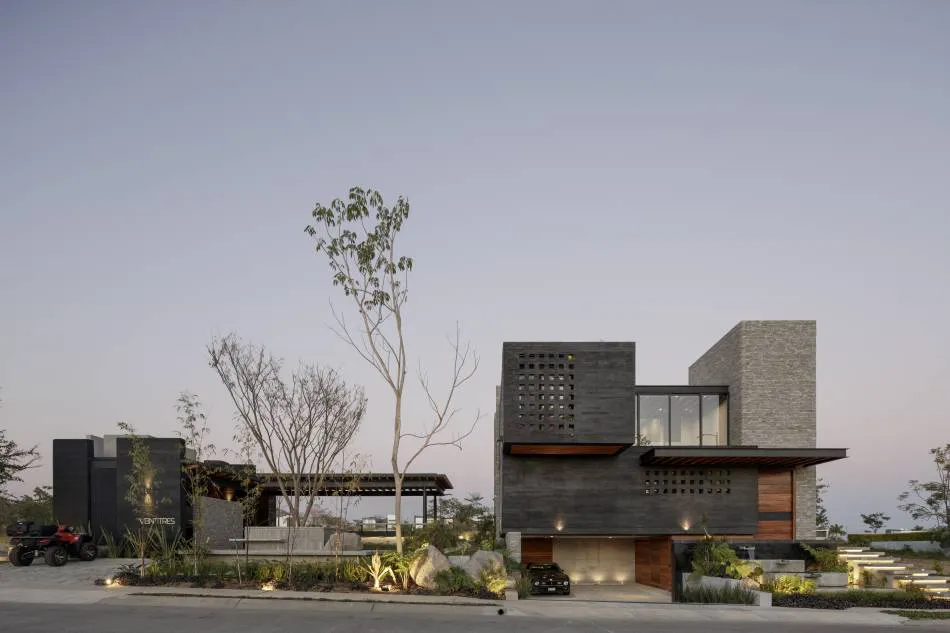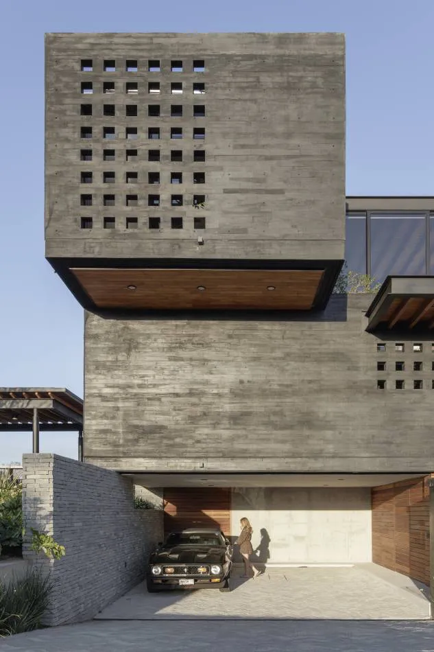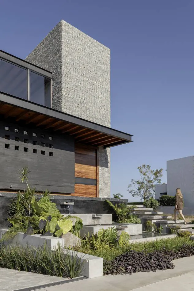 Entender la estética de este proyecto, dirige la percepción a una armonía inmejorable entre los elementos robustos, pesados e industriales acompañados de otros que aportan la calidez y ligereza necesaria para la vivencia del hogar, tal es el caso de los techos y elementos de carpintería. El proceso artesanal durante la construcción de la casa, se percibe a simple vista en la materialidad seleccionada. Las marcas del concreto enduelado, la colocación de las piedras en muros y la riqueza de las celosías coladas en obra, evocan una vez más al valor de la imperfección dentro de la búsqueda de la perfección.