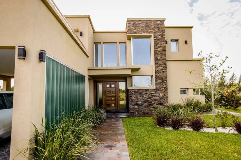 La vivienda cuenta con dos plantas y algo más de 250 m² cubiertos y 50 m² semicubiertos. Sus líneas rectas y una volumetría resaltada por la alternancia de revestimientos (piedra y hormigón en nude) sumadas a la considerable proporción de vidrio, la inscriben dentro de lo más granado del estilo contemporáneo.