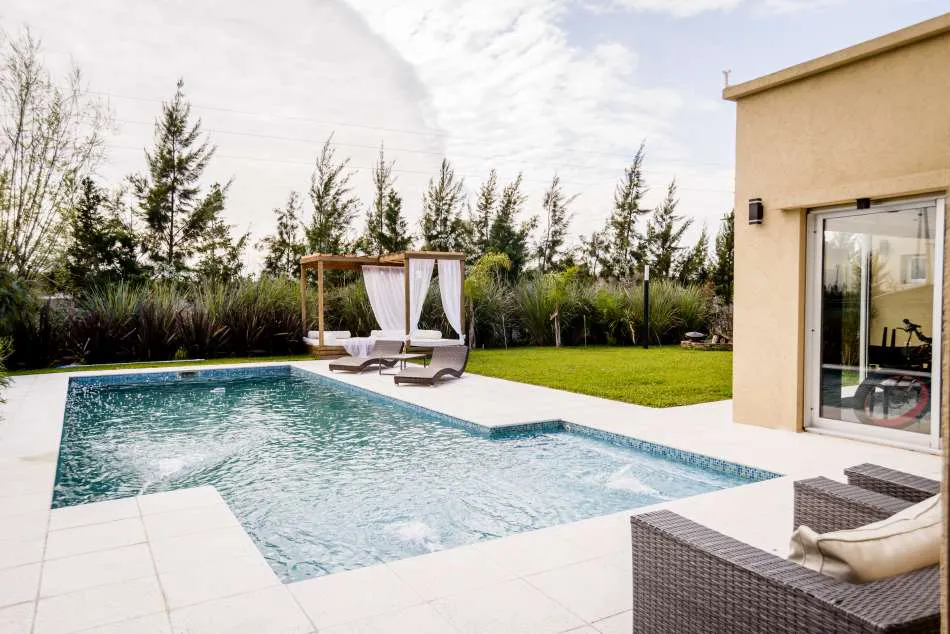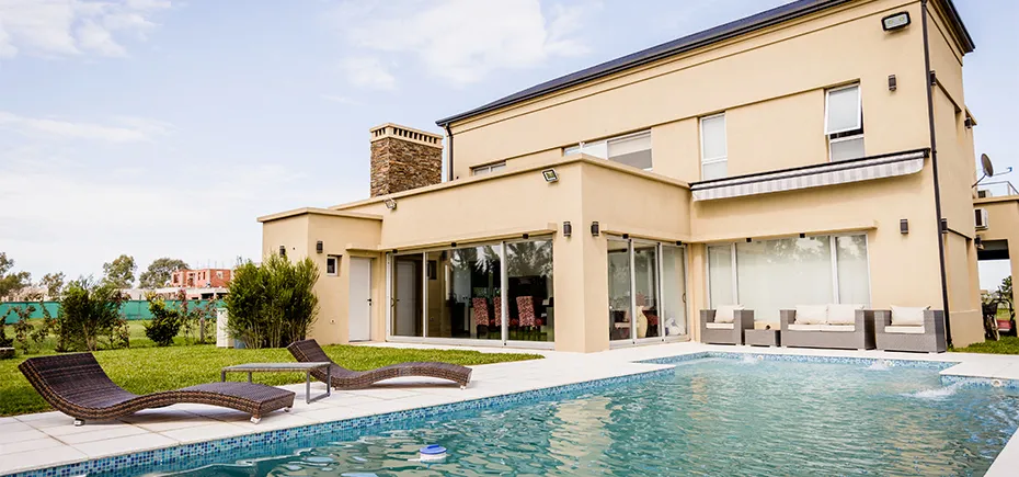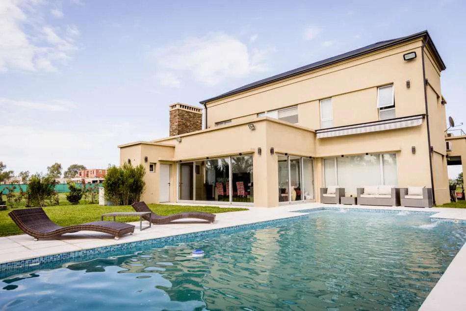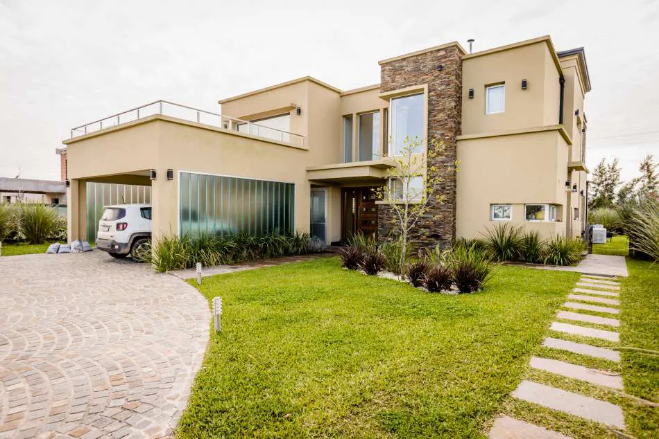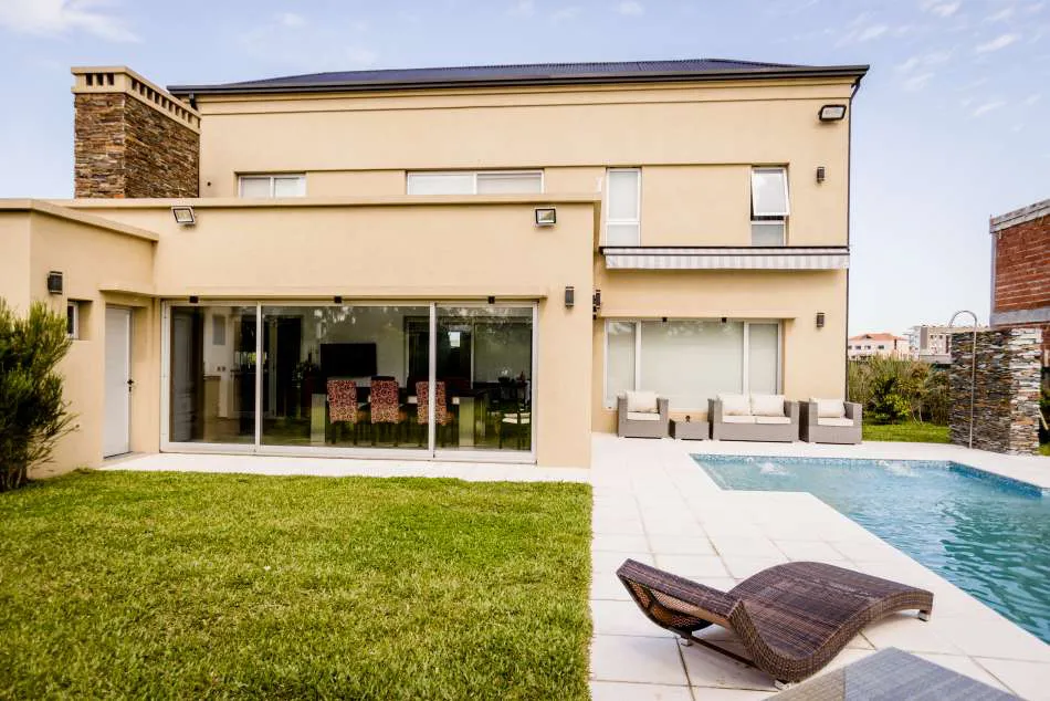 Una amplia nave compuesta por un estar-comedor y una cocina separada de ellos por barra, dependencias de servicio y escritorio completan el área cubierta de la planta baja. Hacia atrás, se destaca la galería quincho que se incorpora a la casa. La pileta de natación está estratégicamente ubicada para que el solárium sea la expansión del living.