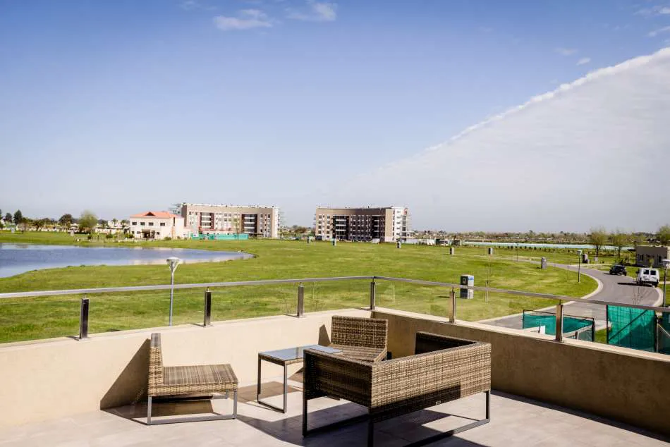 En la planta alta se ubicaron los 3 dormitorios. La suite es la que cuenta con la gran terraza que da lugar al garaje y desde la cual se visualiza la laguna; también tiene un amplio vestidor y baño privado.