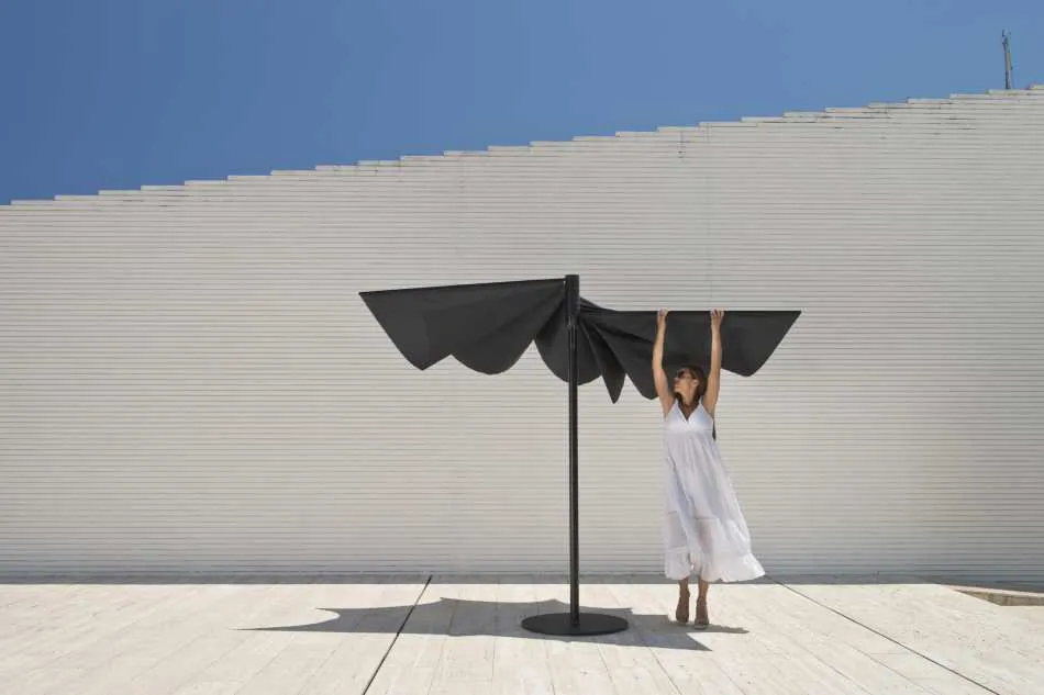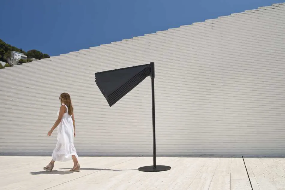 La firma Calma es la fabricante de este diseño de Andreu Carulla que sedenomina OM. Una sombrilla de diseño claro y elegante, con una funcionalidadaltamente refinada.