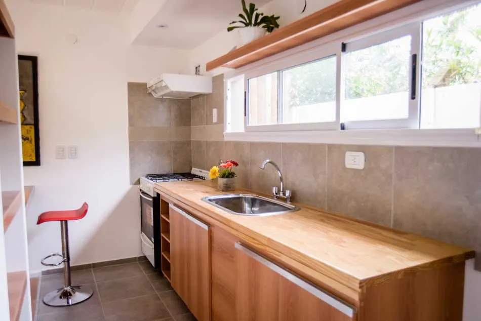 Se complementa la planta cero, con la cocina que posee vistas al patio, donde por medio de una barra en madera participa del estar-comedor.