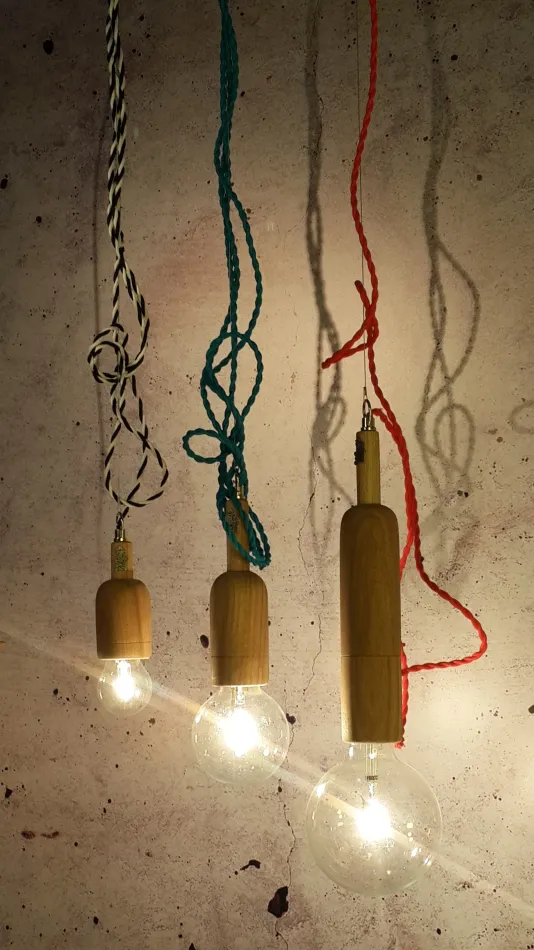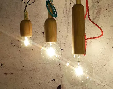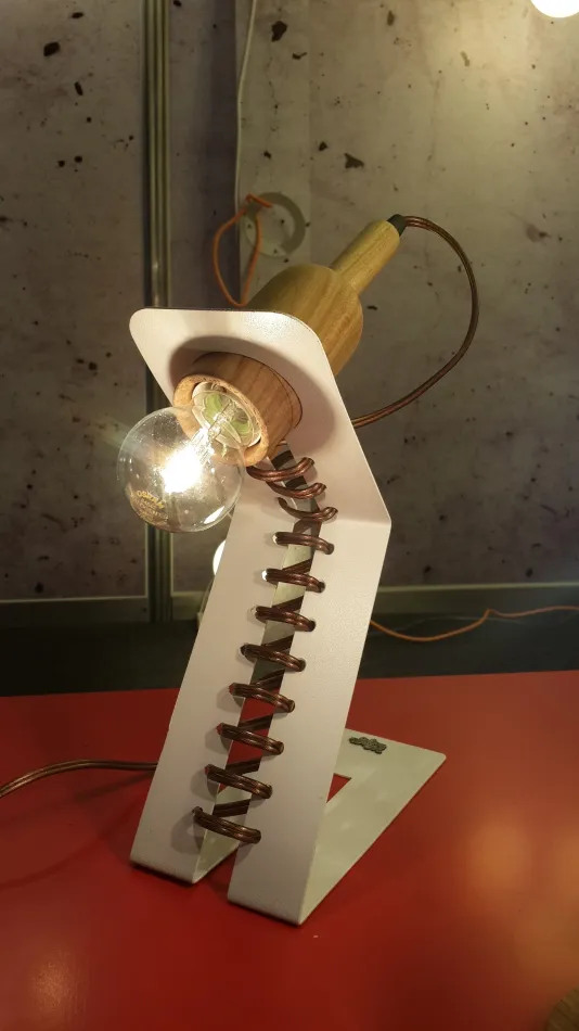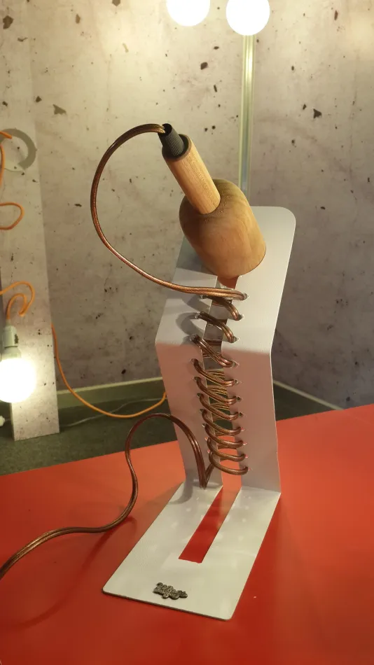 Vella Corset es la lampara que honra su propio nombre con su propuestaestetica. Realizada en chapa de acero esmaltado con pieza de madera Petiribitorneada, sus dimensiones son 200 mm y de altura 350 mm.