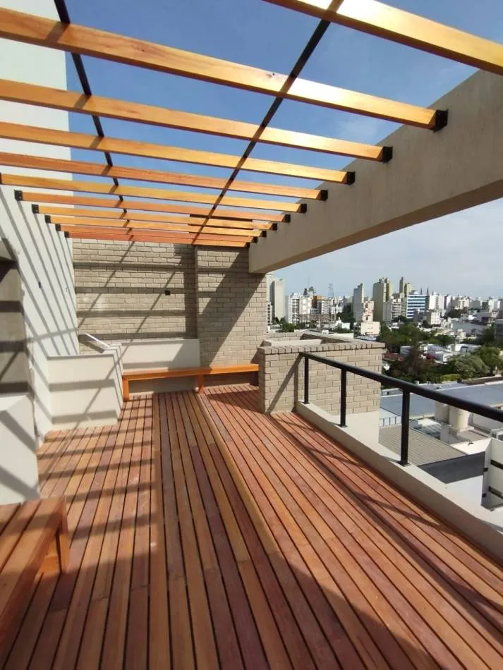 Este edificio se desarrolla en Planta Baja y ocho (8) niveles de departamentos en altura. Del 1ro. al 7mo nivel, se ubican dos unidades de ambiente único por piso, de 40 y 35m2, respectivamente.