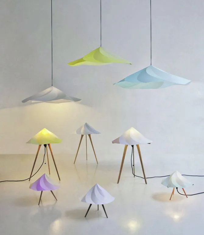 La mesa Shimmer Alta, diseñada por la arquitecta española Patricia Urquiola para Glas Italia, destaca en la colección por su base en trípode de cristal estratificado y acabado iridiscente multicromático, que muta según la luz y la perspectiva.