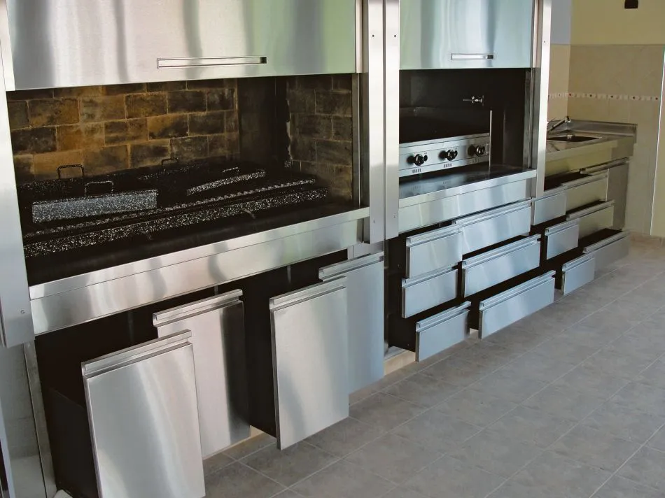 El interior de parrilla es a gusto de cada asador: puede elegir entre parrilla al carbón, a gas o combinar ambas. Las parrillas al carbón pueden adquirirse con enrejado redondo o en ángulo y módulos intercambiables para que pueda asar carnes, achuras, brochettes, provoletas o verduras, según desee. Parrigas, horno y anafe completan las múltiples posibilidades para el interior de su parrilla. En el caso del bajo parrilla, la propuesta es ordenar y aprovechar mejor los espacios. Hay dos opciones combinables entre sí: puertas y cajones. Hay que tener en cuenta que en materia de decoración e interiorismo actual, las parrillas son parte del hogar y están integradas a él; el asador está junto a los comensales y no separado de ellos. Por eso es importante que este sector esté en orden. Como en todos los casos, en su sistema Premium realizan trabajos a medida. La decoración puede realizarse conforme al gusto del cliente, al igual que la elección de herrajes y manijas especiales. La colocación es programada. También ofrecen un Sistema Modular, ideal para obras nuevas, reformas o construcción. Con kits que incluyen frente y bajo parrilla, interior de asador (leñero, parrilla y opcional de Parrigas) y premarco para un correcto y seguro ajuste. Se entregan con un pack de accesorios: pala, atizador y artefacto. Los bajo-parrillas disponibles son los de puertas de abrir, en acero inoxidable o en chapa prepintada. Con 20 distribuidores de la marca en el país, no hay excusa para no contar con una de estas parrillas en el hogar. Su variedad de productos es muy amplia, y sigue creciendo gracias a las sugerencias de los clientes y la creatividad de los arquitectos que confían en este producto.