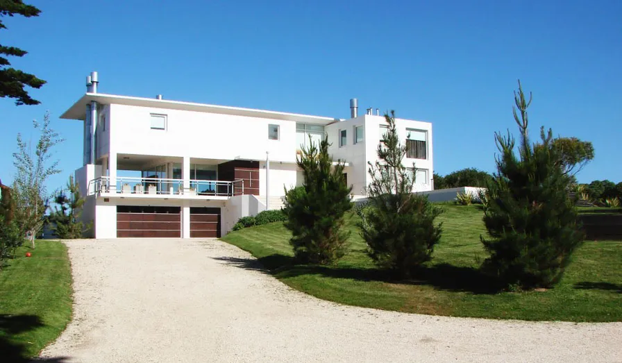 Diseñada y ejecutada por el estudio de Arquitectura de Hugo Pouso, la casa surge de forma inesperada bajo el cielo costeño, caracterizada por la austeridad cromática y un diseño racional, apreciándose una leve influencia de la escuela de la Bauhaus tanto en la forma como en la proporción. El proyecto se basa en la sencillez compositiva, la transparencia y la búsqueda de una intensa relación entre el interior y el exterior.