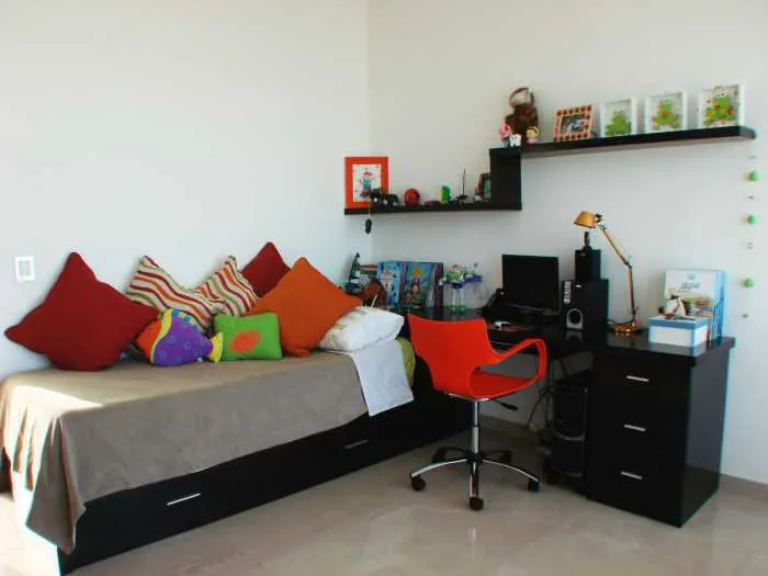La iluminación se ha dispuesto siguiendo los mismos criterios de simplicidad y no pretende robar importancia visual a la arquitectura. En cuanto a la ambientación, se ha trabajado con criterios muy sencillos de elección de materiales y utilización de muebles de estética funcional,simples y geométricos. La base cromática pasa por los blancos, arenas y ocres, generando ambientes calmos y súper luminosos que se confunden conel exterior.