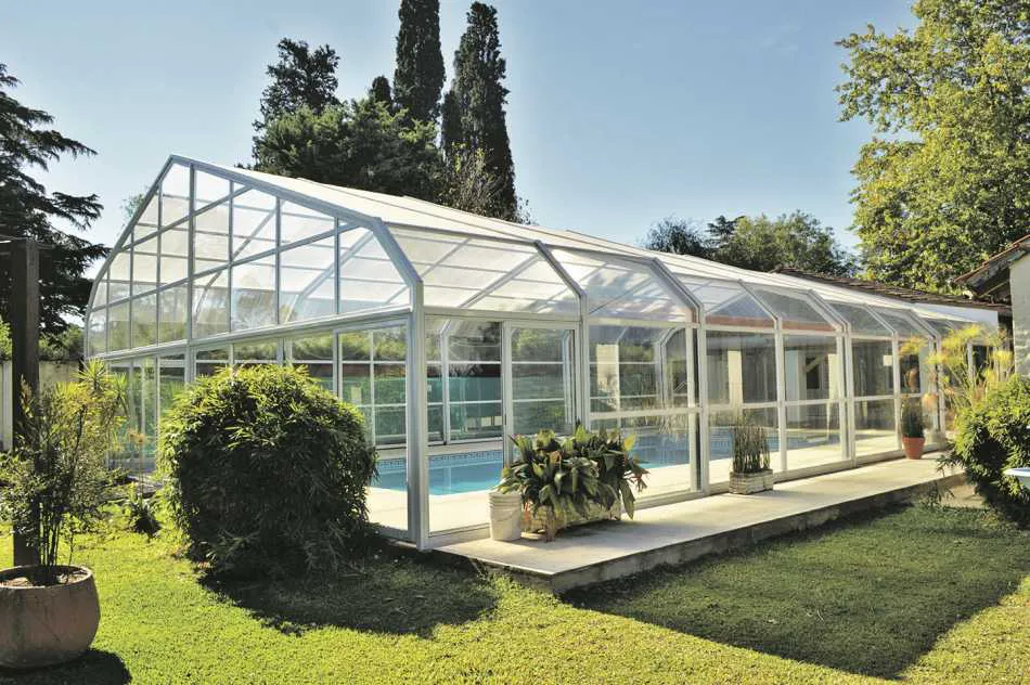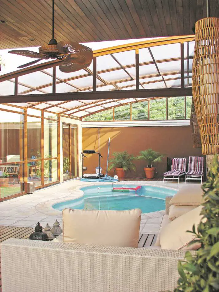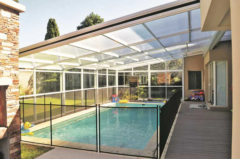 placer, juegos, risas, diversión. El agua nos relaja, nos hace bien a la salud y a la mente. Entonces, ¿por qué no extender ese placer a todos los días del año? La piscina, que hace años era considerada un accesorio del parque, es hoy un ambiente más de la propiedad. Se trata de integrarla a la casa y de optimizar su uso el mayor tiempo posible, calefaccionándola y automatizándola. Sin embargo, por más calefaccionada que esté el agua, si la pileta se encuentra completamente al aire libre es inevitable no sentir frío y correr riesgo de enfermarse a causa de los cambios bruscos de temperatura. Por eso, cada vez cobran más fuerza los cerramientos telescópicos, que se incorporan a la pileta de manera rápida, sencilla y sin necesidad de obra.