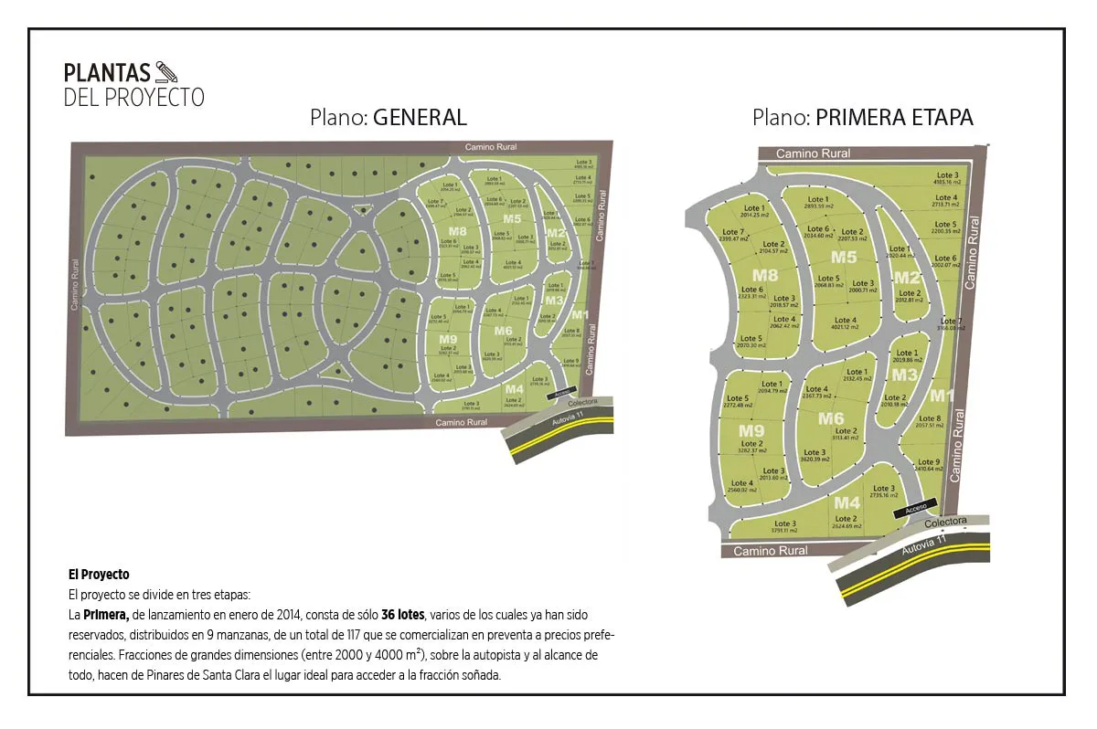 El proyecto, que se divide en tres etapas, contará con 117 lotes que van de 2000 a 4000 m². Además, se ofrece la posibilidad de escrituración inmediata, planes de financiación bancaria y no contará con expensas.