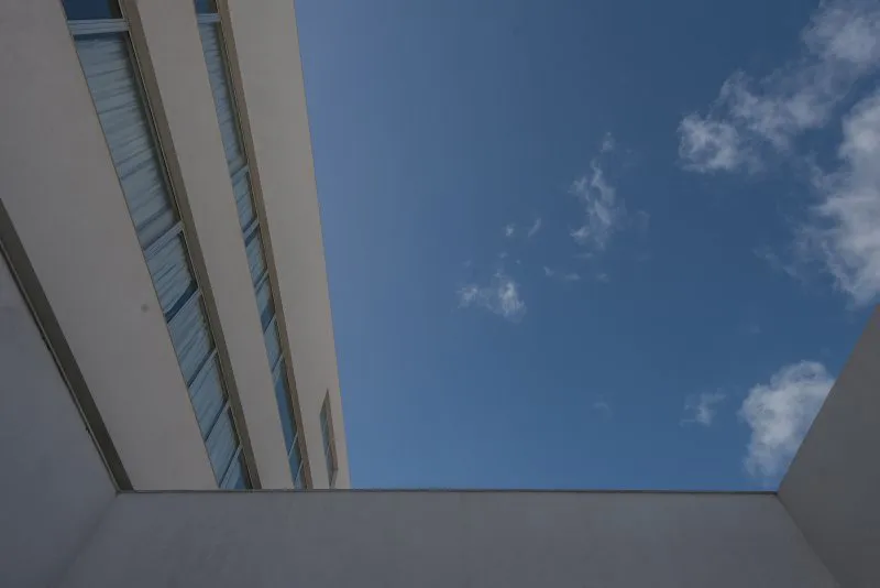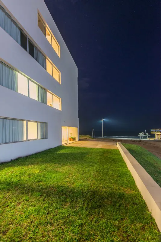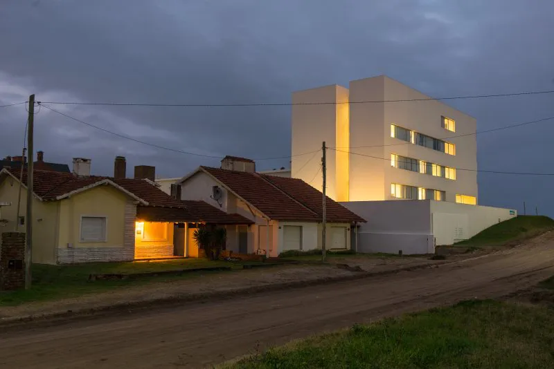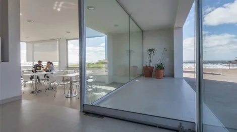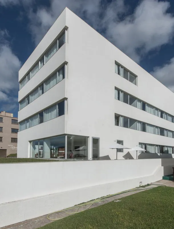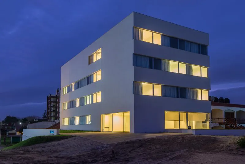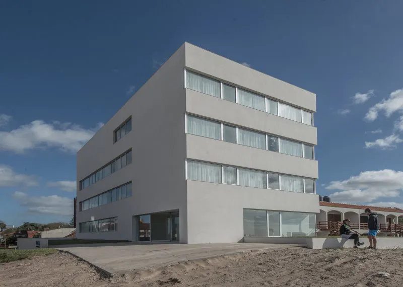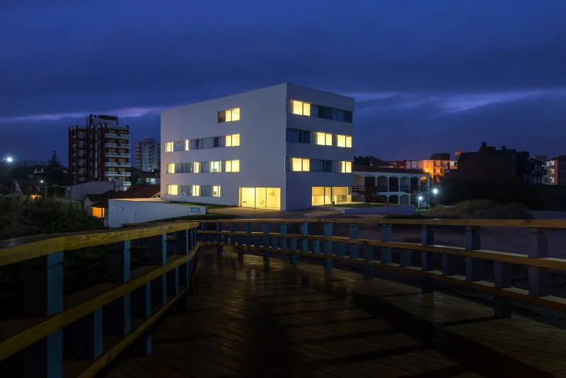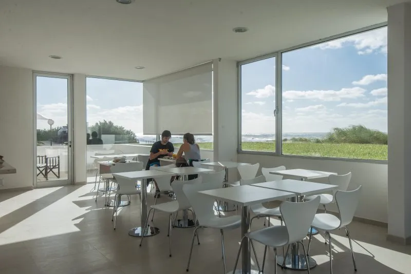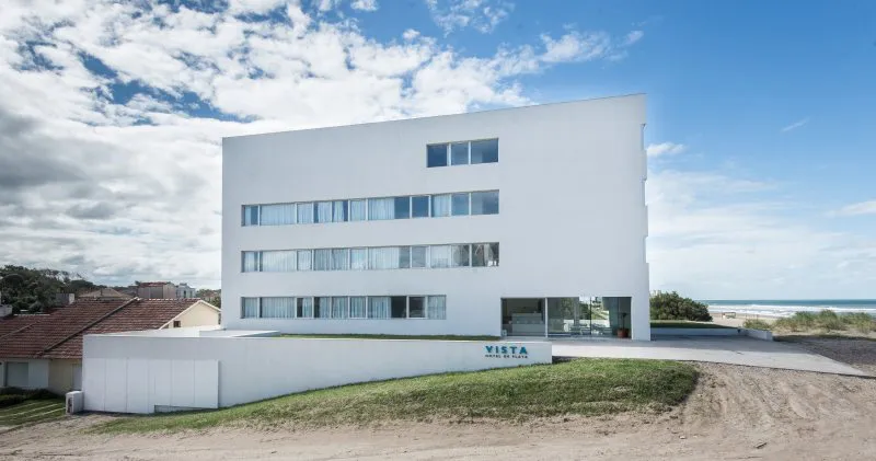 Por lo demás, armonía y sobriedad son algunos de los fundamentos que se revelan en la fachada y el exterior, tanto como en el interior del hotel. El blanco puro de las paredes y el vidrio hace que la estructura no sólo no compita con su alrededor, sino que logre destacarlo. De esta manera, habitaciones y espacios comunes ofrecen vistas que permiten amanecer y desayunar en compañía de las bellas playas del sur de Villa Gesell.