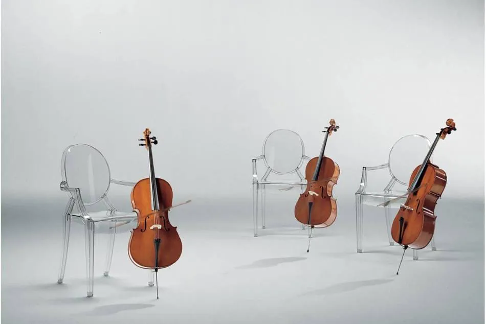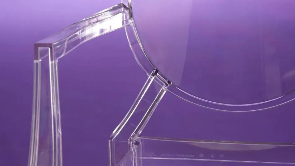 Louis Ghost es el ejemplo más atrevido de inyección de policarbonato en un sólo molde. A pesar de ofrecer una imagen etérea y cristalina, es estable y resistente, a prueba de golpes y agentes atmosféricos, y se pueden apilar hasta 6 unidades.