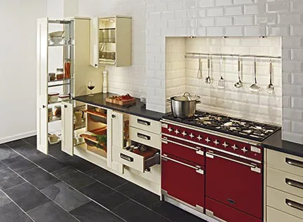 • Una puerta mágica a los condimentos. Sistemas extraíbles para los muebles de la cocina, brindan una vista completa de los productos, al mismo tiempo que facilita su acceso; contienen bandejas, cestos, soportes para tazas, cubiertos y barras, permiten una carga entre 16kg y 70kg, dependiendo de los modelos. Los fanáticos las tienen destinadas a los condimentos.
