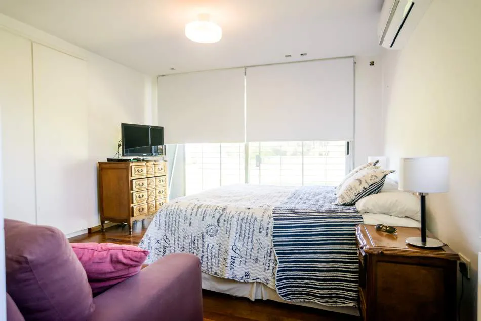 En las habitaciones, sobre el piso de madera y entre las paredes blancas que guardan muebles a veces rescatados del anticuario- es el caso de la suite- se perfila en tapizados y otros detalles, la personalidad del usufructuario.