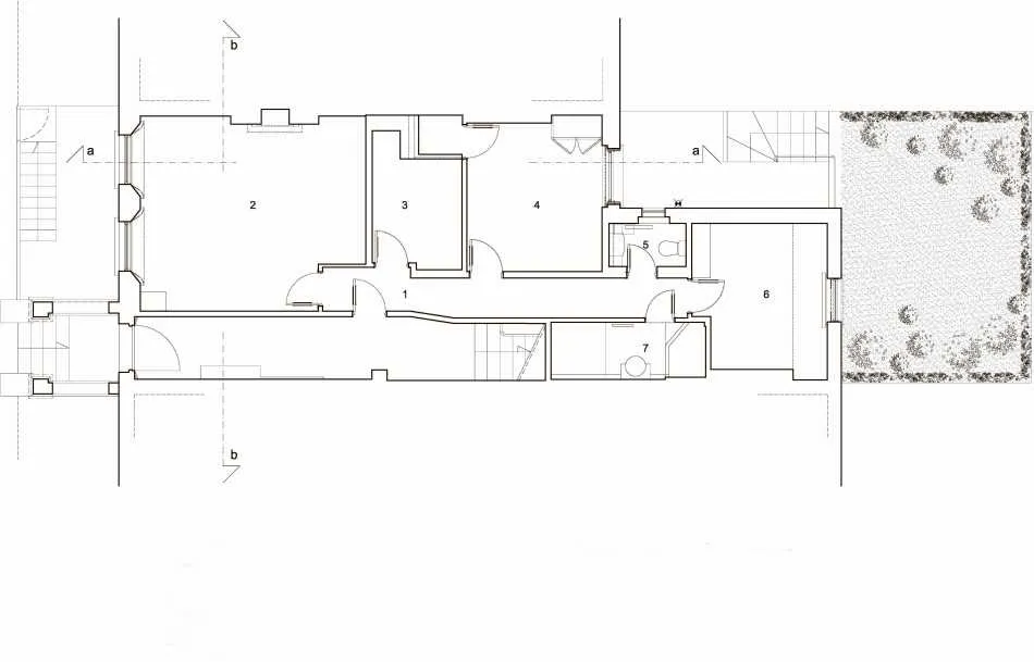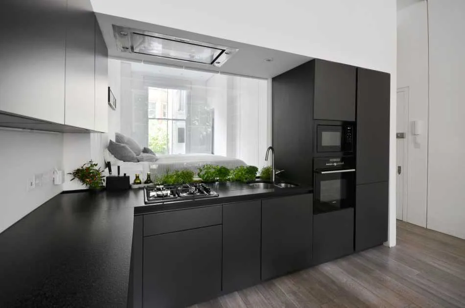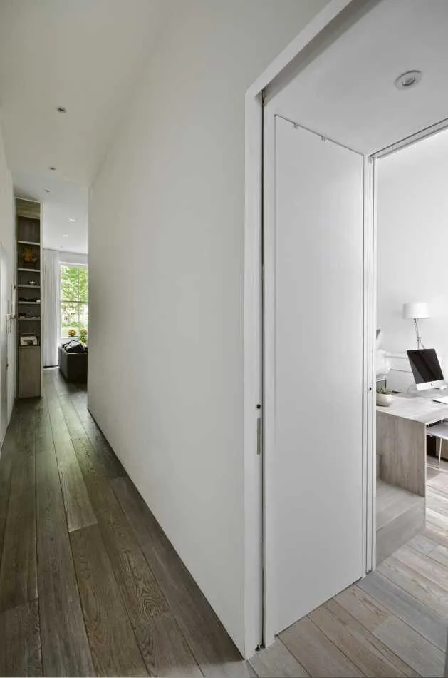 En la planta baja de una de estas construcciones cuya fachada de inconfundible cuño inglés (ladrillos de dos tonos diferentes, ventanas alargadas, hierro negro y el blanco en los alféizares de piedra y en otros detalles) debía, merced a su valor histórico, mantenerse intacta, Daniele Petteno creó –contando con apenas 5 ventanas y 69 m²- la maravilla funcional que usted ve, cuya geometría simple y aseada es la respuesta más lúcida y elegante que se hubiera podido dar a los requerimientos de los clientes.