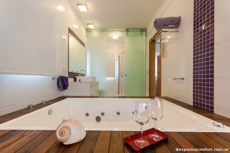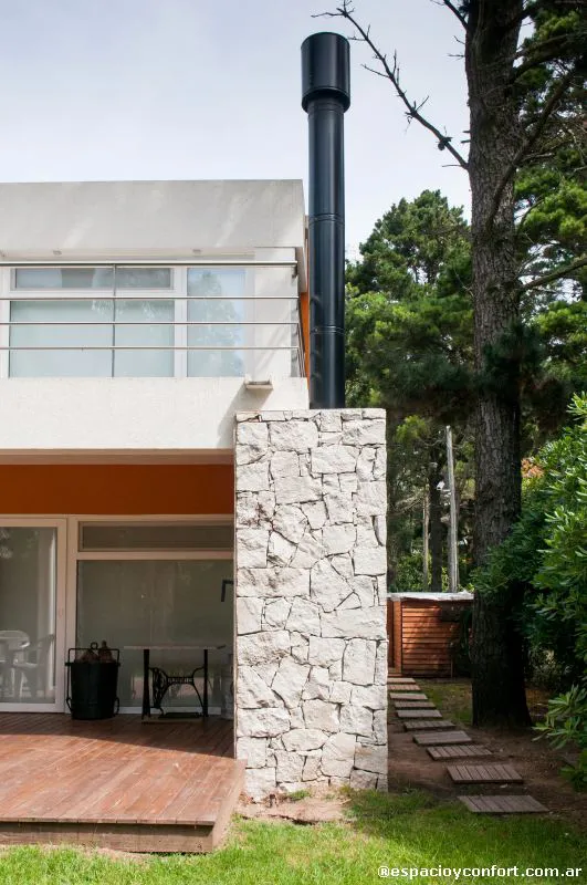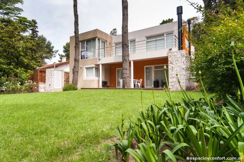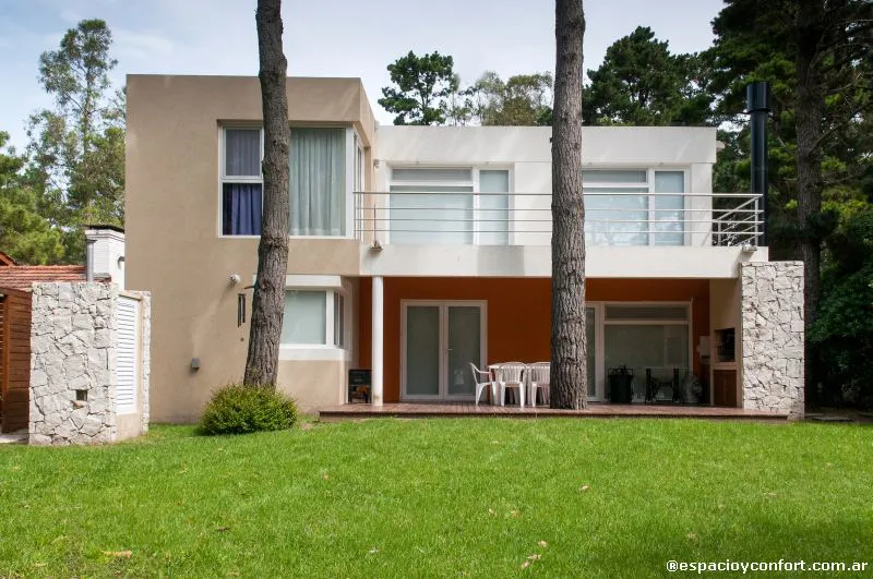 Por lo demás, la disposición es la usual. Así, si la planta baja contiene las áreas de uso social (incluyendo, como no podría ser de otra forma en una zona costera de nuestro país, una galería semi-cubierta con parrilla); el primer piso albergará el área privada: se trata de una planta sintética en que se hallan dos dormitorios (uno destinado al niño), un baño y una suite de absoluta transparencia interior que se expande a un maravilloso balcón- terraza que se asoma a la copa de los árboles.