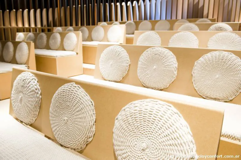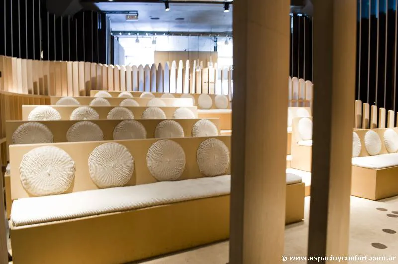 Auditorio Masisa. Inspirada por la belleza y la potencia edilicia de la Ex Fábrica de Alpargatas, la arquitecta Paula Herrero desarrolla un proyecto que revela un compromiso con el desarrollo sustentable. La premisa fue interpretar la historia textil e industrial del edificio así como también el desarrollo de Masisa y sus valores: Masisa y las Reservas Naturales Argentinas. La forestación. El crecimiento sustentable; Masisa y las Comunidades, los talleres, los oficios, los artesanos. La Boca y los artistas.