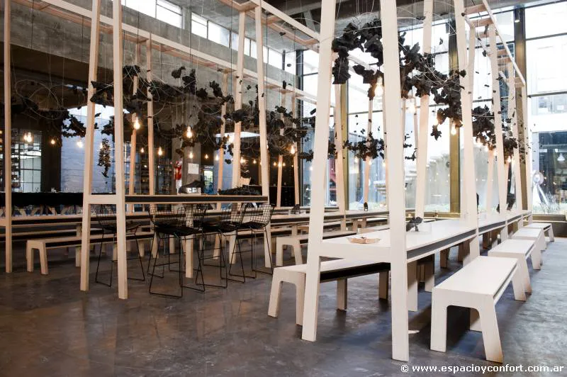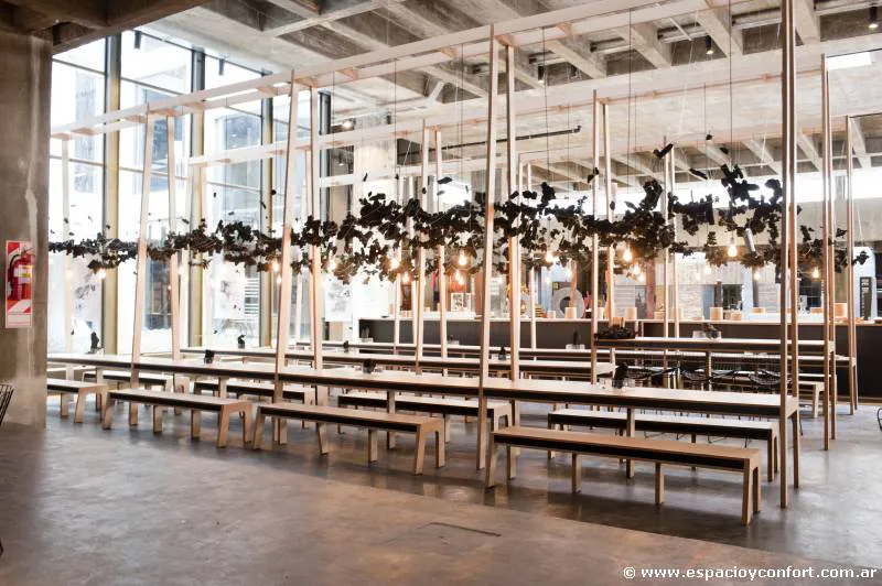 Este espacio recibió la Mención Especial a la Arquitectura y Diseño de Interiores. La idea es la generación de un comedor con múltiples posibilidades. Un espacio de impronta oriental que propone un recorrido entre mesas de diseño, en formas orgánicas y con una disposición libre que toma fuerza en el espacio total. Está compuesto por 11 mesas de mármol y granito negro en diferentes terminaciones de pulido, otras en madera natural.