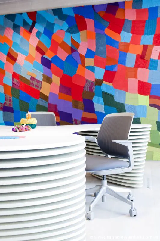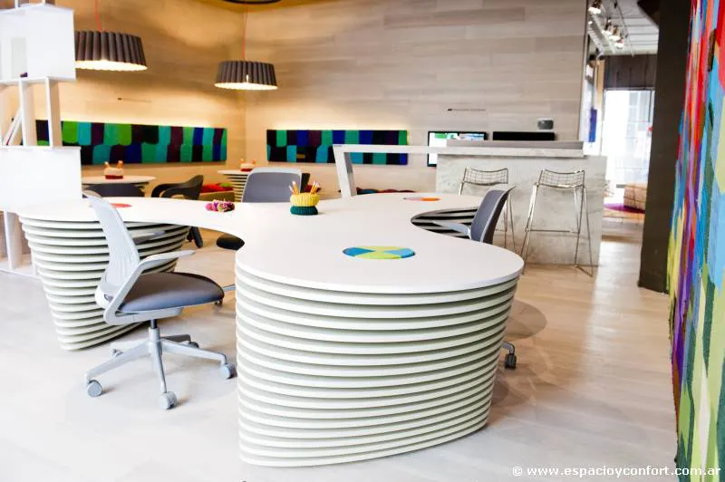 La innovación está en el clima amigable, cálido e informal que se vivencia en el espacio, gracias a la utilización de materiales nobles, que remiten a un ambiente natural con la intención de generar una sensación de bienestar en el usuario. La propuesta incluye diferentes modos de “estar” en el trabajo, a través de un diseño espacial y de mobiliario de gran flexibilidad a las diferentes y cambiantes necesidades.
