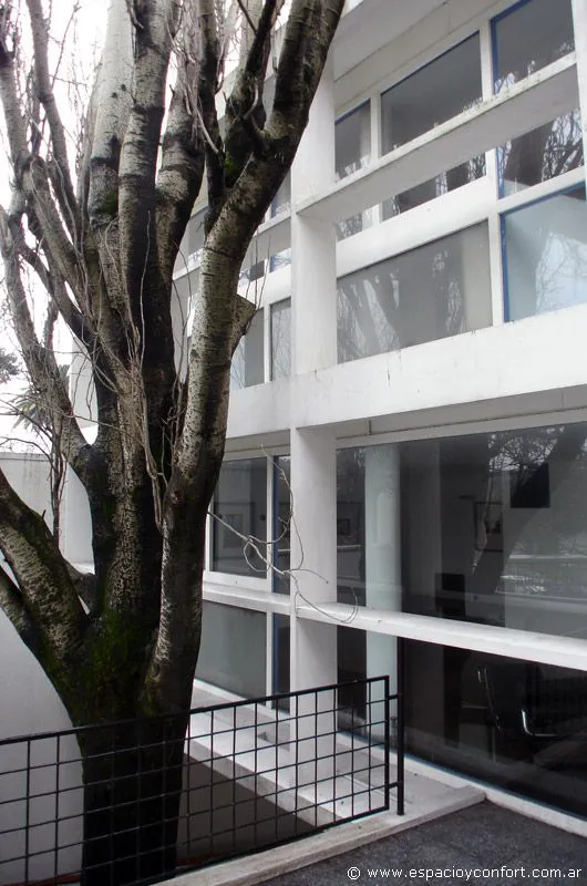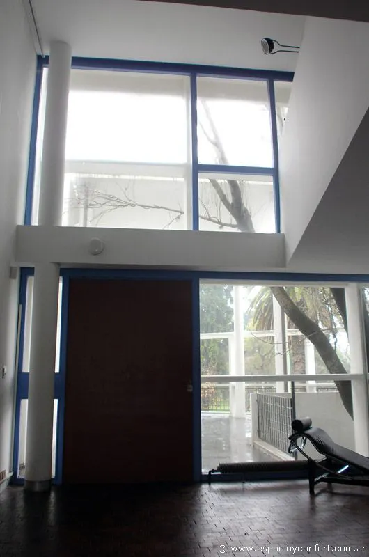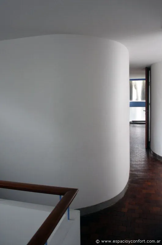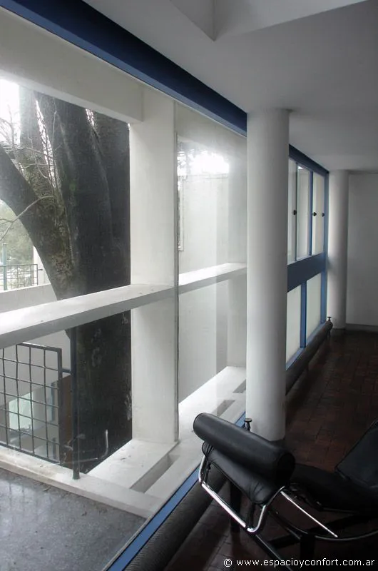 La Obra Respondiendo al requerimiento del propietario, el proyecto separa claramente la zona de consultorio, que se encuentra al frente, de la vivienda, articulando ambas áreas por el patio y la rampa, resolviendo de esta forma la zonificación con absoluta maestría en un espacio tan reducido. En esta vivienda, ícono de la arquitectura moderna, se puede apreciar todo el repertorio expresado por Le Corbusier en sus obras pero con la particularidad de emplazarse sobre un terreno entre medianeras con dimensiones limitadas, circunstancia que no se repite en ninguna otra obra del autor y que la hacen única. Aparecen los pilotis, el brisoleil, la rampa, la terraza-jardín, la planta libre, la ventana corrida y además la valorización del entorno, determinada por las visuales hacia el Boulevard y el Bosque y la asimilación del proyecto de las construcciones vecinas. De aspecto revolucionario para la época en la que fue edificada, la vivienda tiene una íntima relación con el entorno dada por la continuidad y fluidez espacial entre el exterior y el interior de la casa. La sorpresa en el recorrido y las formas, las transparencias y los espacios fragmentados, los contrastes de luces y sombras, el juego siempre presente entre interior y exterior, la presencia del árbol, las columnas que se separan de los muros, el contraste de los colores… todo es armonía y riqueza, hechos que la transforman en una verdadera obra maestra de Le Corbusier y de la arquitectura.