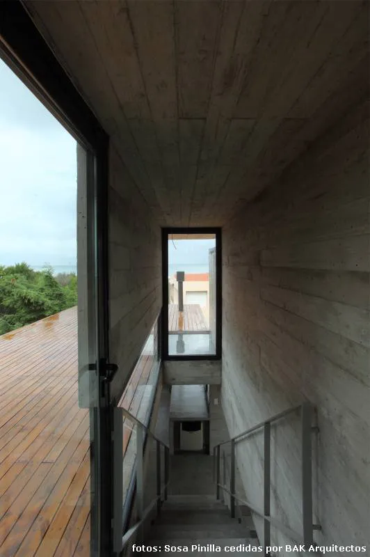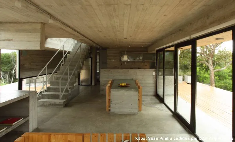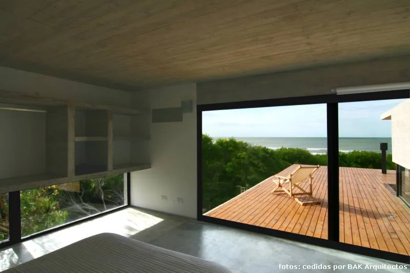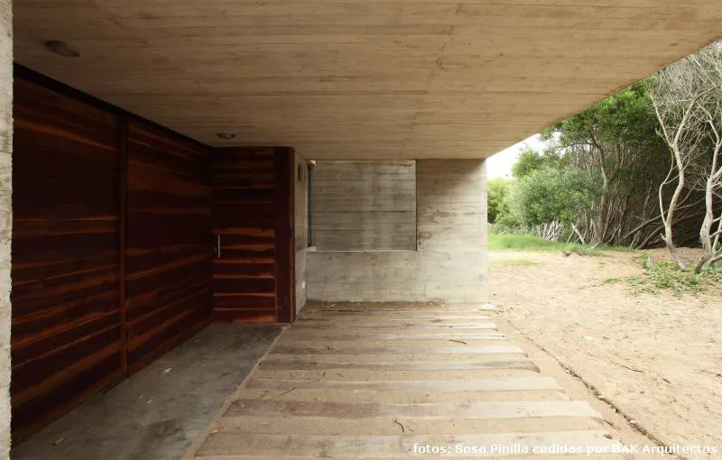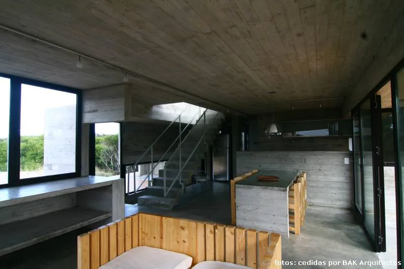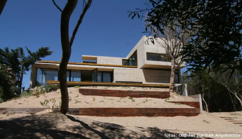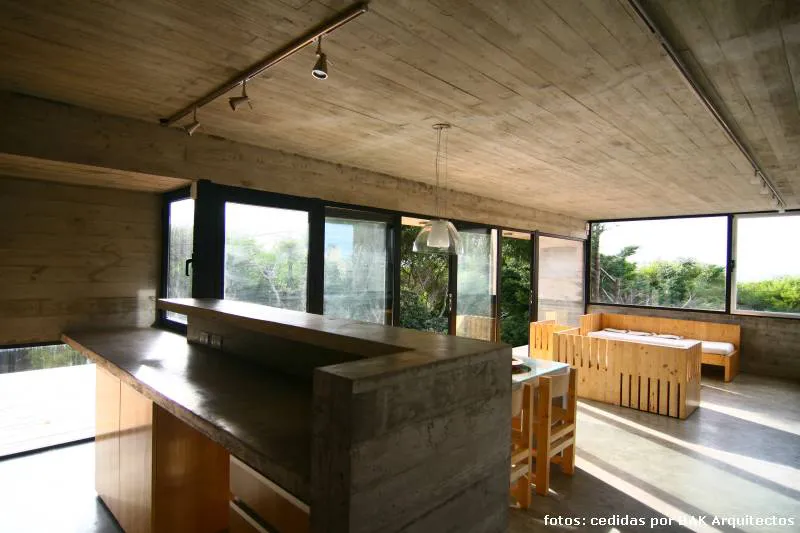 La casa que nos ocupa en esta nota fue, sin embargo, la primera de hormigón que el equipo realizó en la playa, lo que, por supuesto (teniendo en cuenta las variaciones entre la playa y el bosque y, dado que la idea primitiva se había basado en una exhaustiva investigación de las características del clima y el suelo en la que se construiría) exigió un nuevo estudio y las consecuentes adaptaciones del sistema constructivo.