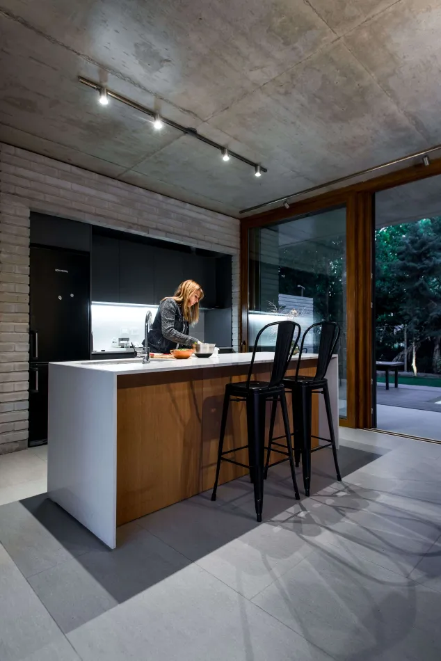 Finalmente, la elección de los materiales nobles (ladrillos de cemento, hormigón visto y revestimientos de madera y venecitas) permitió cumplir con otra de las premisas de este y de todos los proyectos que lleva a cabo el estudio: el bajo o nulo mantenimiento de la casa.
