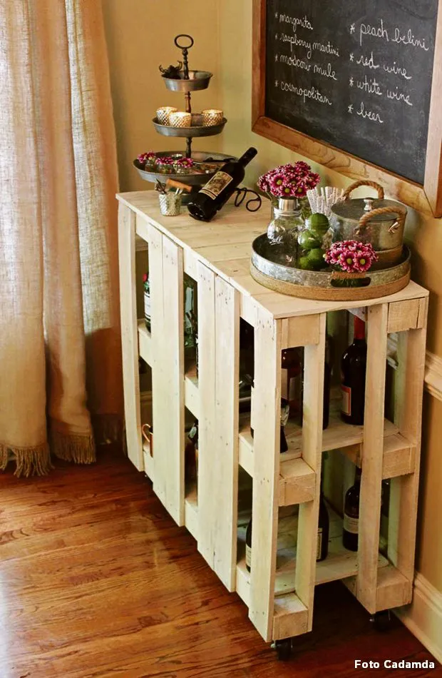 En otras ocasiones, el propio mueble bar en el que se guardan las botellas puede contar con un pequeño mostrador oculto que se sube o baja haciendo las veces de barra de apoyo. Este tipo de muebles suelen colocarse en una esquina, ocupando muy poco espacio. Otras veces se destina la zona central de una estantería a almacenar licores, compartiendo con los libros una misma zona, dándole un toque que combina deco de estilo intelectual y trendy al mismo tiempo.