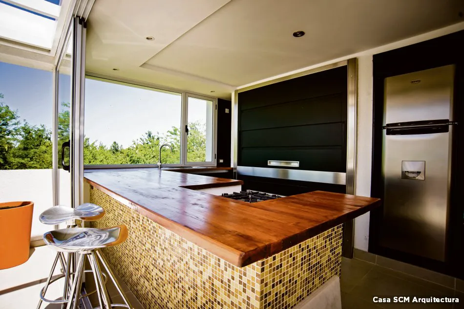 La madera es un material perfecto, ya considerado como el material de construcción del futuro gracias a sus características únicas. Mayor resistencia al fuego, es sustentable, reciclable y aislante, está colmada de innumerables diseños, colores, tonos y formas que la naturaleza le otorga, además de su gran versatilidad y capacidad de adaptación a geometrías complejas y todo tipo de proyectos arquitectónicos. Por su parte, cada vez más la tendencia de celebrar los momentos, de compartir en casa con amigos y seres queridos se evidencia en la sociedad. En tal sentido, hoy y gracias a las múltiples opciones disponibles en el mercado, tanto en maderas como en otros materiales complementarios, ese deseo es sencillo de cumplir.