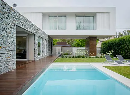 Por último, vale la pena mencionar también el entorno de la piscina, como otro de los elementos que componen el espacio. Las opciones son muchas y dependerán del estilo deseado y la funcionalidad buscada: decks, ya sea de PVC o de madera, bordes y losetas atérmicas y antideslizantes, piedras, etc.