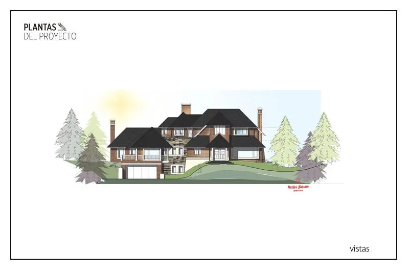 Para ser más específicos, más que una casa, la construcción (407 metros cubiertos) ideada por Nicolás Bruno responde al estilo de lo que acostumbramos a llamar chalet. El chalet, desde su origen Suizo hasta la actualidad, ha mostrado su capacidad plástica adaptándose a países, épocas y gustos, y pese a las notables diferencias que pueden existir entre un chalet estilo francés y uno inglés, por ejemplo, cualquiera puede reconocerlos por sus techos en pendiente, en general de tejas, y sus aleros.