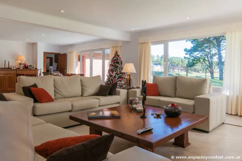 Por otra parte, de la misma forma en que en su versión original el chalet es una vivienda perfectamente adaptada al clima, al relieve y a la sociedad en la que surge, la obra de Nicolás Bruno responde principalmente a una búsqueda espacial íntimamente relacionada con el entorno. Por eso, además de hallarse en perfecta sintonía con la exquisita urbanización de Pinamar, se determinó su orientación para que se aprovechara lo mejor del lote y, las vistas al vecino campo de golf, primaron en el diseño y localización de los espacios.