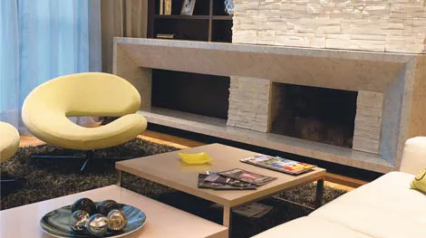 Como la relación entre la casa y el entorno (un barrio de categoría) era ya equilibrada, se respetó en el exterior la caja original y se optó por un revestimiento texturado color gris cálido para la fachada, con el objeto de dar neutralidad al conjunto. Sólo se jerarquizó el acceso con un pórtico de travertino mate cortado a la veta que sostiene un techo de vidrio; así se consiguió que la escala de ingreso sirviera como preámbulo de la puesta en escena interna.