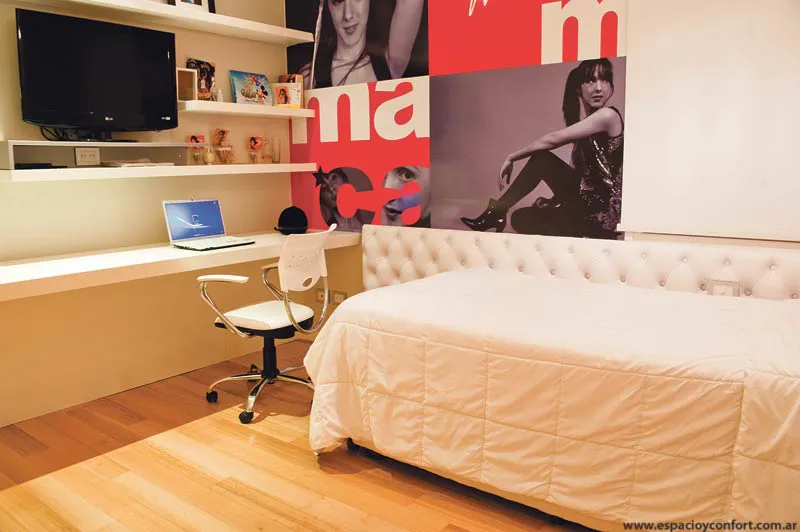 Las habitaciones de los jóvenes incorporan en dosis menores (un respaldo, un cuadro, un color) motivos del pop, posiblemente como tributo al sistema compositivo de contrastes de luces y sombras que anima el proyecto.