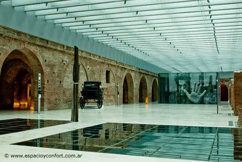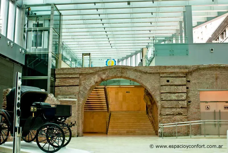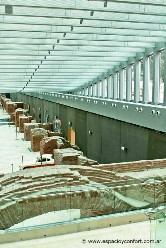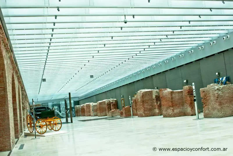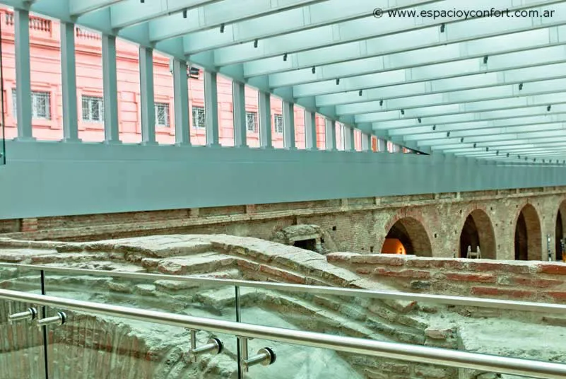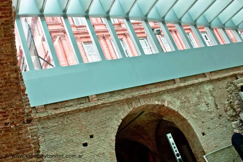 En este sentido, la cubierta vidriada fue pensada con la intención de conciliar la necesidad de cubrir y proteger el sitio arqueológico como tal, al mismo tiempo que pudiera conservar la luminosidad propia de un predio a cielo abierto. La vinculación espacial entre el sector de galerías abovedadas y los restos de la Aduana de Taylor fue realizada mediante la liberación de una serie de arcos que se encontraban cegados.