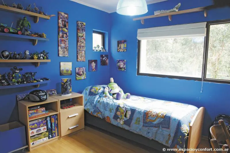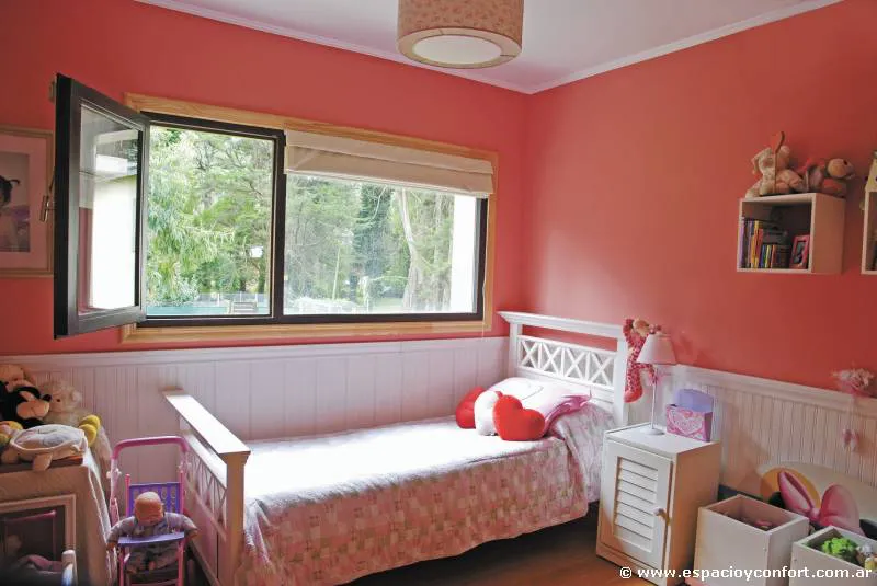 Dos dormitorios se conforman a medida y estilo de cada niño. Para ella, notas muy femeninas mediante elementos, texturas y colores engamados en los rosas. Para él, una atmósfera muy varonil generada por la gama de los azules.