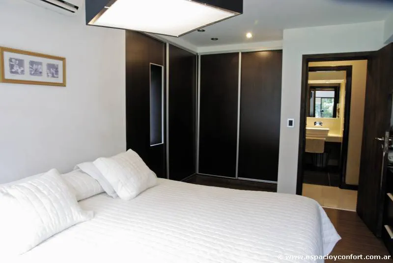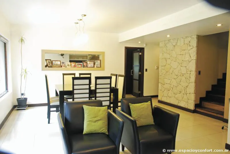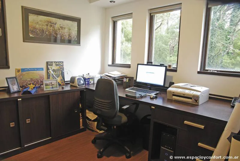 En el nivel superior se encuentran las zonas privadas: dos dormitorios, (uno matrimonial) y un luminoso y funcional escritorio.