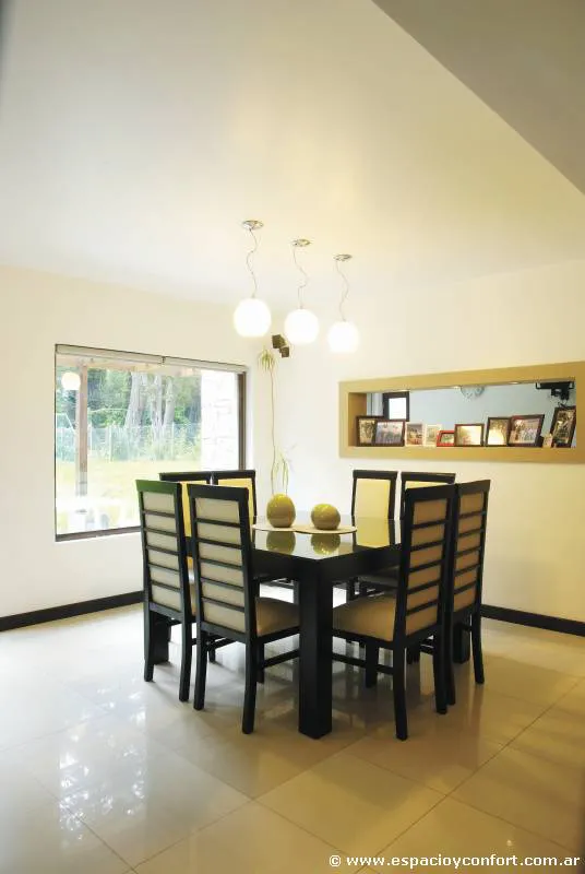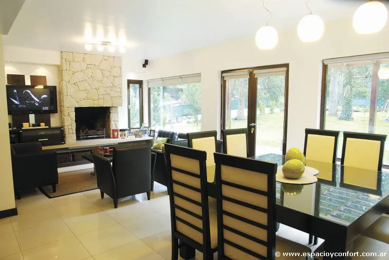 Diáfano, sereno, sin piezas altas que impidan la libre circulación de la luz, el estar-comedor pone en práctica las consignas con la que surgió esta residencia: espacios súper cómodos que permitan disfrutar de diversas situaciones y que inviten a que la mirada se pierda en el paisaje circundante.
