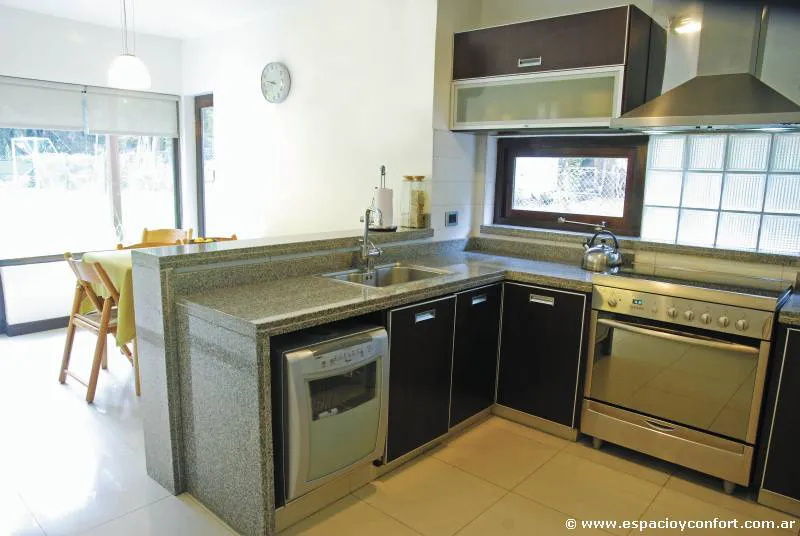 La cocina, ultra moderna y funcional, se abre al comedor diario por medio de una barra desayunador. Una pieza ágil y muy práctica para el movimiento diario.