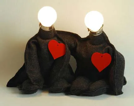 Realizadas totalmente a mano y con una textura tan particular y suave como la felpa; Pierre y Noä escenifican, además, cada cual un personaje: los dos nimios –la unidad mayor no sobrepasa el medio metro de altura-, desenchufados, con los hombros caídos pero el corazón no tanto. Cómo cuando al hundirnos en un sofá en el ocaso de una tarde, tomamos un café, un libro, una pausa, siempre bajo la apaciguada luz de una lámpara.~