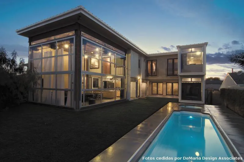 La estructura principal, el alma de esta casa, esta conformada por ocho contenedores de carga, elementos críticos de la infraestructura del transporte que facilita el comercio global.