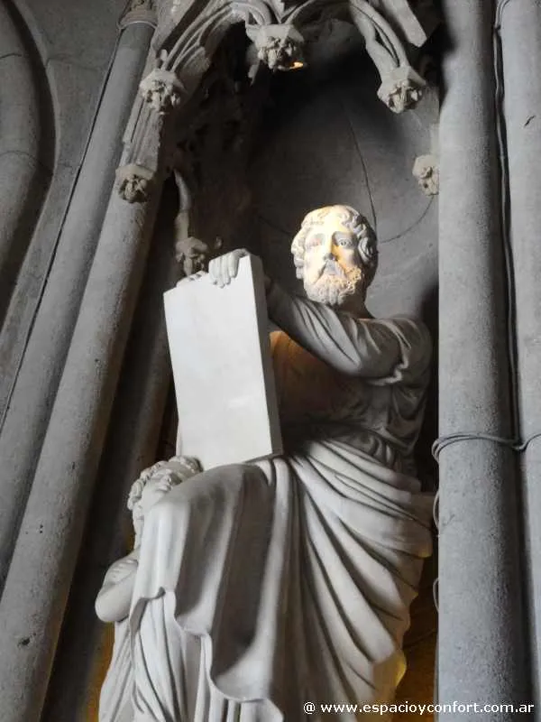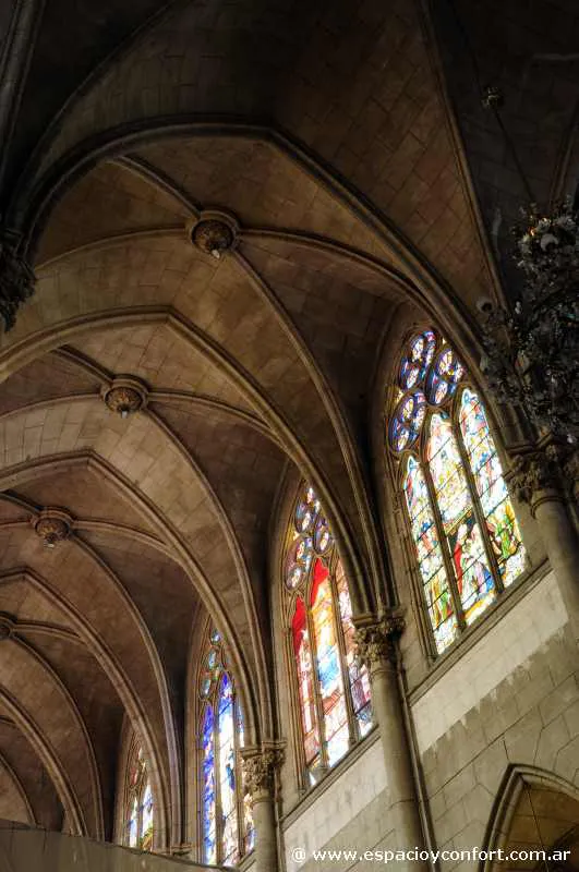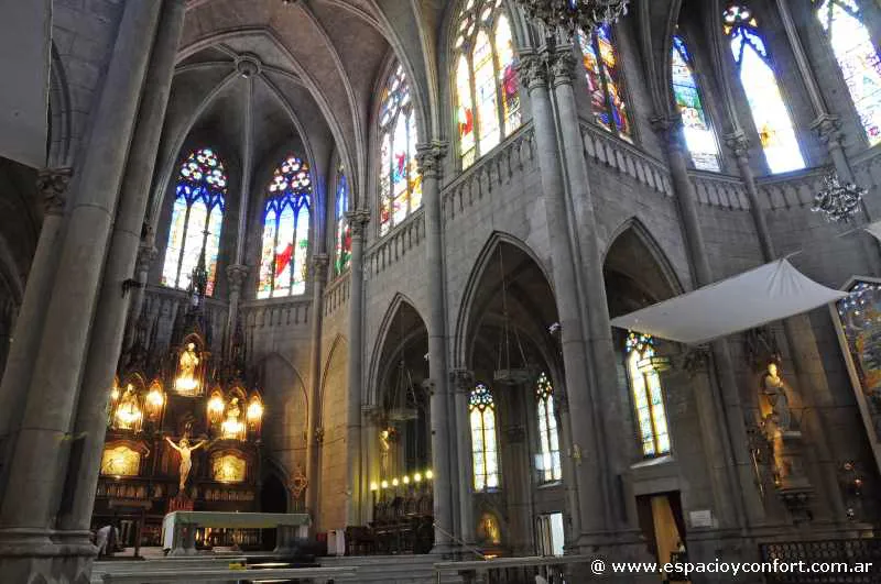 Al ingresar a la catedral, se presenta el vestíbulo donde se pueden observar las imágenes de los Apóstoles sobre pedestales. En su planta, el templo presenta una nave central y dos laterales cubiertas por bóvedas de crucería. La nave central presenta una superficie de 1340 m² con una longitud de 67 mts y 20 mts de ancho, con una altura de 20 mts en la estructura de la nave, y de 60 mts en el sector de la torre campanario.