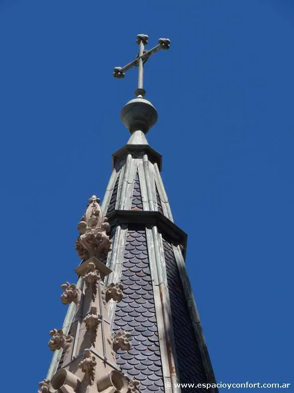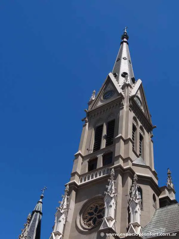 La Iglesia, de arquitectura neogótica, presenta en su estructura una torre principal donde se encuentra el reloj que fue instalado el 25 de diciembre de 1905; y hacia fines de la década del ’20 fue dotada de las cinco campanas que fueron fundidas en los talleres de la casa “les Fils de Paccard” en Annecy - Le- Vieux, Francia.