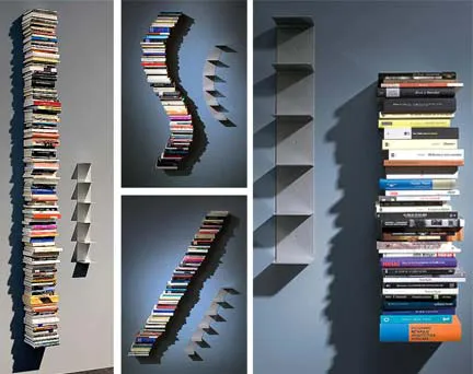 Este sistema de estantes para libros, creación del estudio español díez+díezdiseño, cumple su función contenedora de una forma práctica y original,ocultando el sistema de sostén para darnos la sensación que los ejemplaresestán suspendidos en el